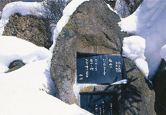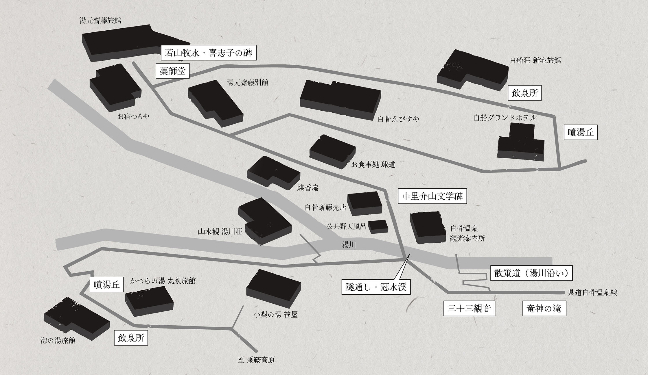 やがて白骨の温泉場に着いて、顧みて小梨平をながめたときはお雪もその明媚な風景によって、さきほどの恐怖が消えてしまいました。