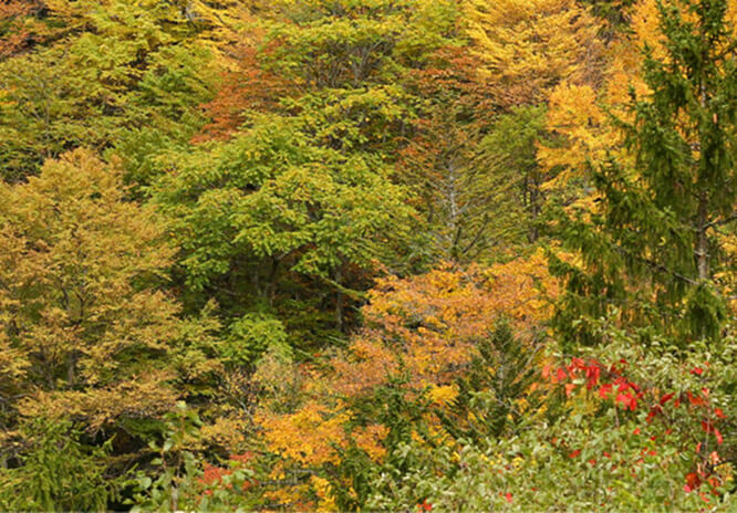 乗鞍岳を見上げ、 ブナやナラの林を眺め、