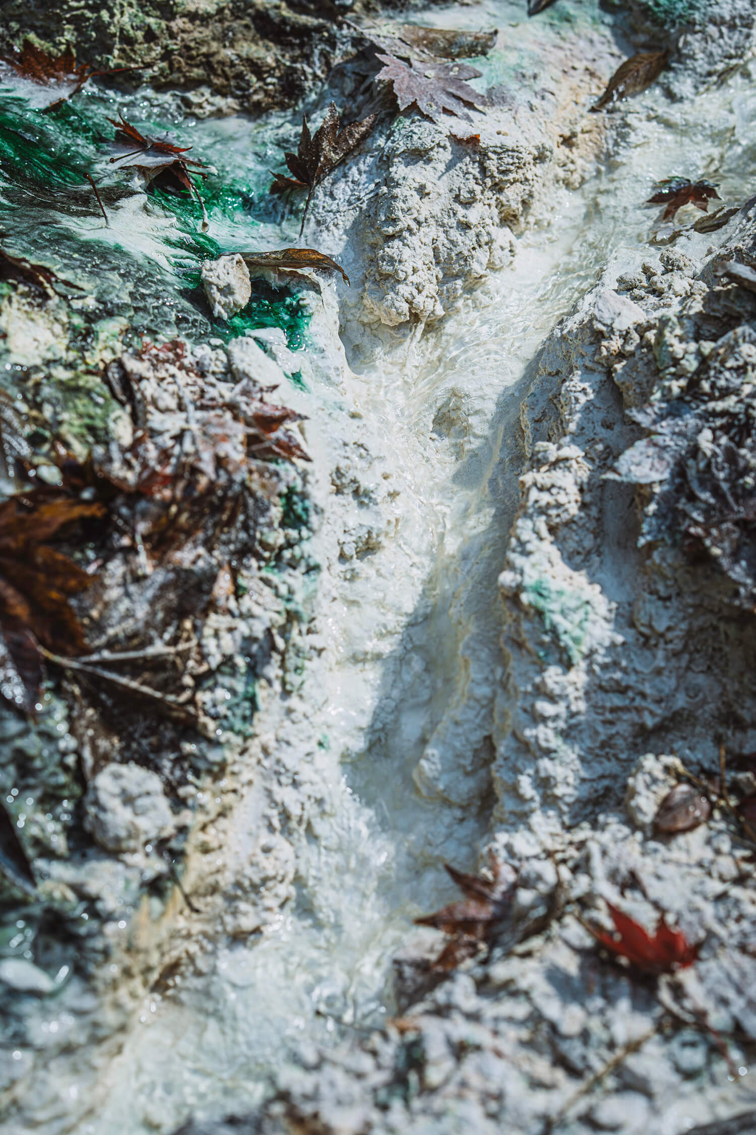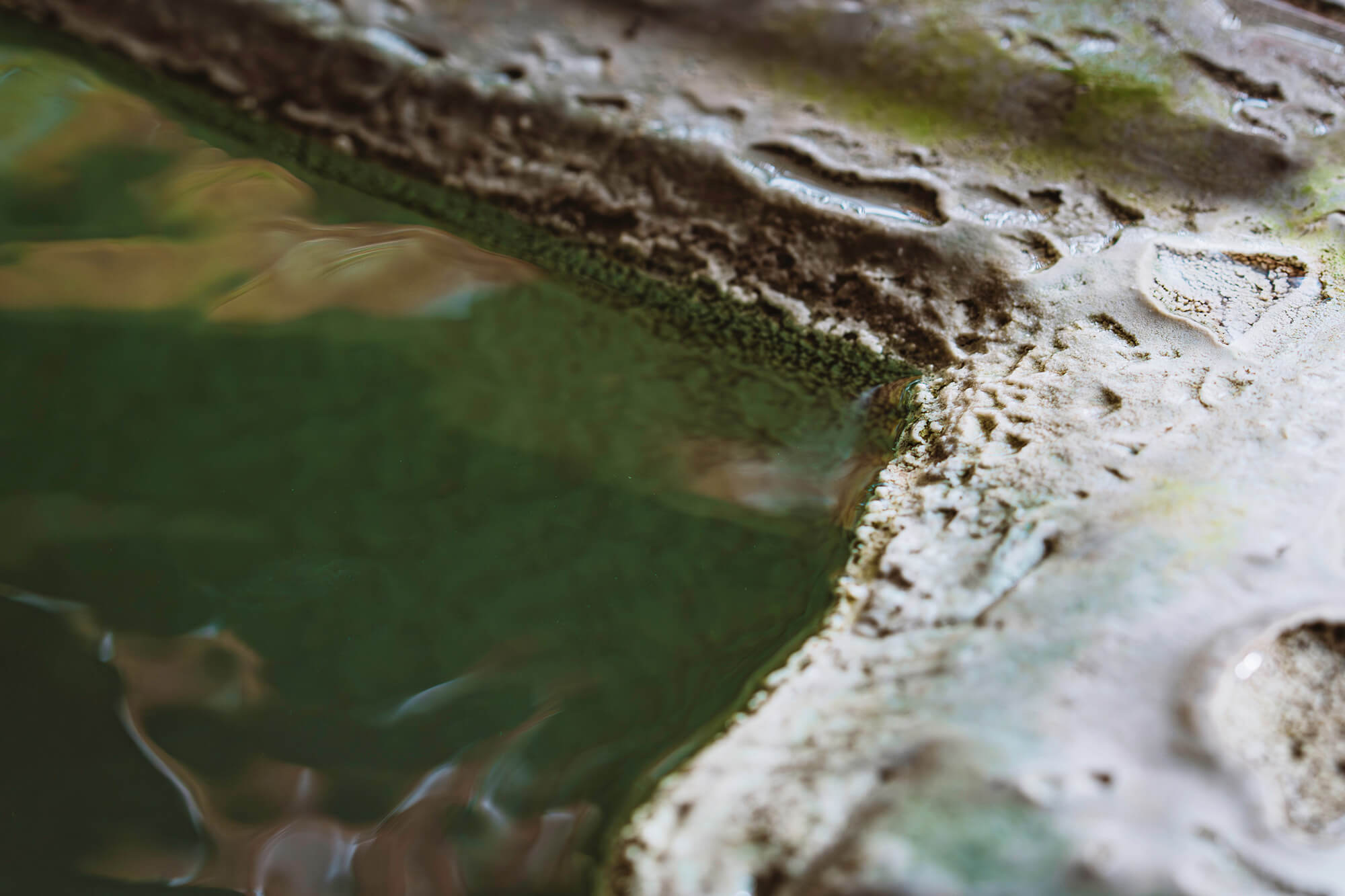 およそ二億数千万年前、古生代の赤道付近ではサンゴ礁が発達していた。そこから生まれた石灰岩は、長い年月をかけてこの地の一部となる。付近の火山活動、地下に溜まった雨水、地熱、すべての条件が揃い、お湯が湧き始めた。乳白色のお湯は、石灰岩の成分がもたらしている。